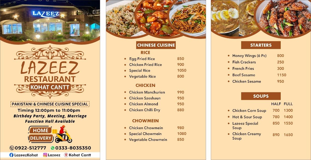 Welcome to LAZEEZ - Kohat Cantonment Kohat, a hidden gem nestled near Samana Bakers in the heart of Kohat Cantonment, Pakistan. This restaurant offers a unique blend of culinary experiences, blending traditional Pakistani flavors with a touch of modern dining elegance. LAZEEZ stands out not just for its location, but also for its commitment to providing a delightful dining atmosphere.